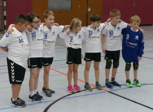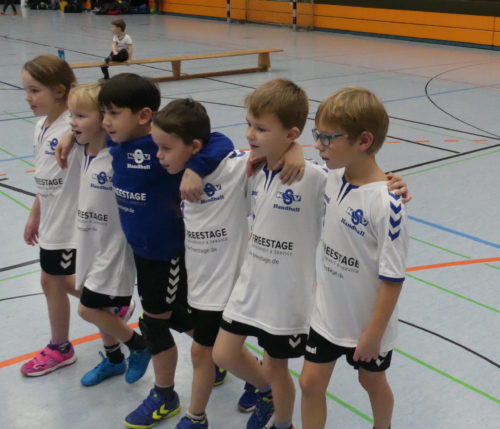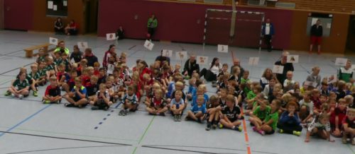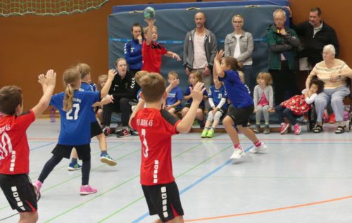 Die Kinder im Alter von 7 bis 8 Jahren werden Freitags von 15:30 Uhr bis 17:00 Uhr in der Kreissporthalle über den Mini-Handball an das Handballspielen herangeführt. Hier wird neben den spielerischen Aspekten durch technische und koordinative Übungen ein weiterer Grundstein für Spaß und Erfolg am Handball gelegt. Höhepunkt sind dann die jeweiligen Mini-Spielfeste, bei denen es über das kleine Spielfeld auf die Jagd nach den ersten Toren im Mannschaftsvergleich geht.